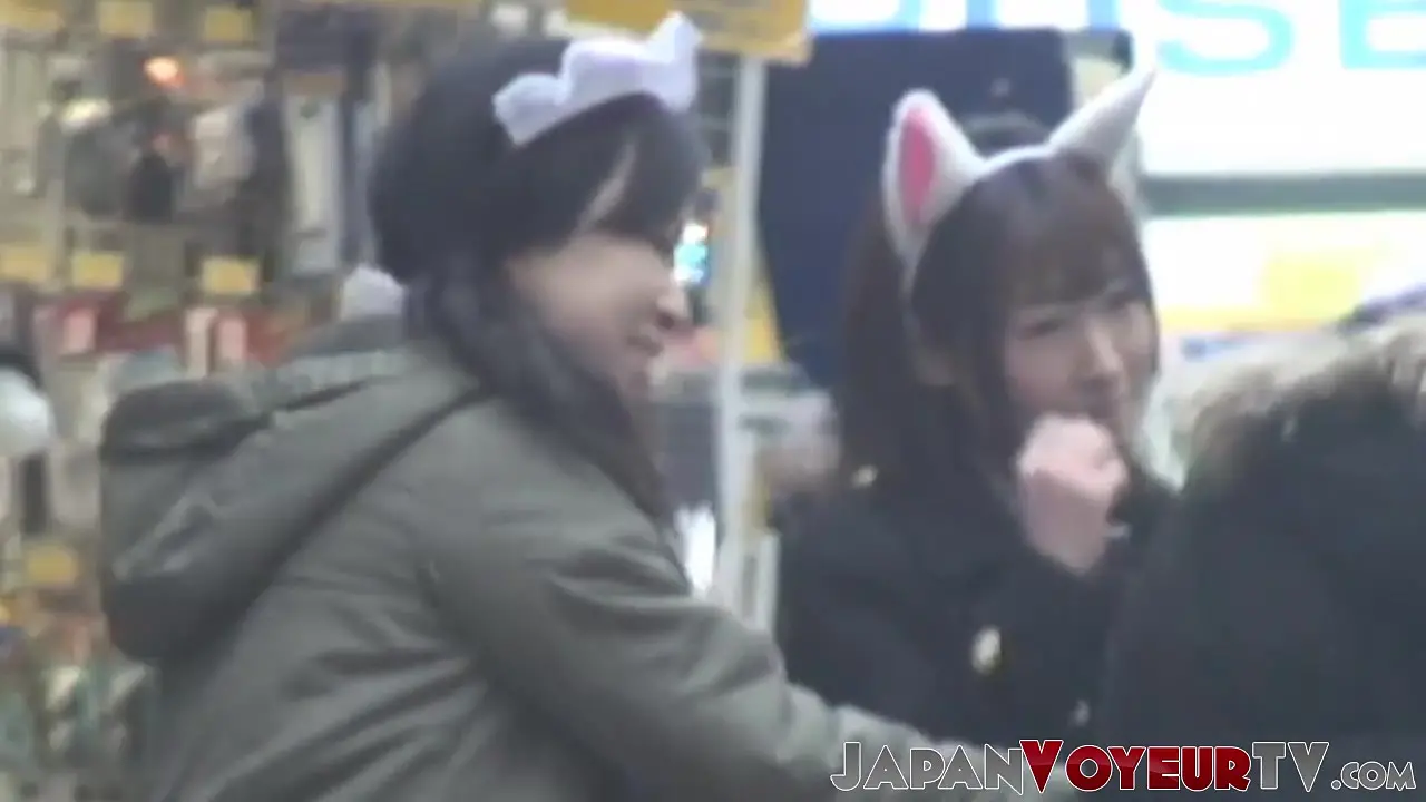 Asian schoolgirls in sexy costumes caught on hidden camera