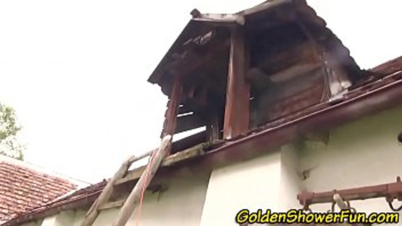Hot glam babe in a vintage mini skirt gets drenched with a golden shower on an outdoor farm. She moans as the warm water splashes all over her, soaking her retro outfit.
