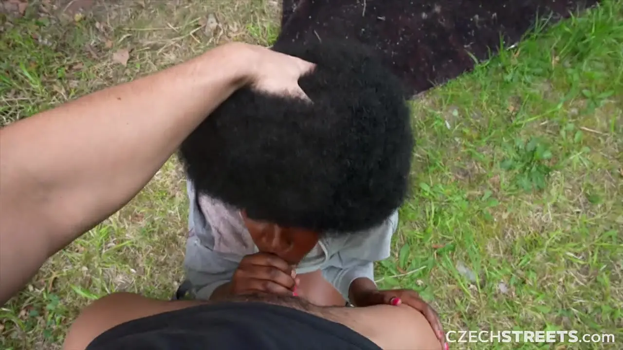 Cute busty black girl Lexi Luv sucks a stranger's cock on a crowded Czech street. She goes down on him fast and deep, making him cum quickly. No one seems to mind as she winks at the camera.