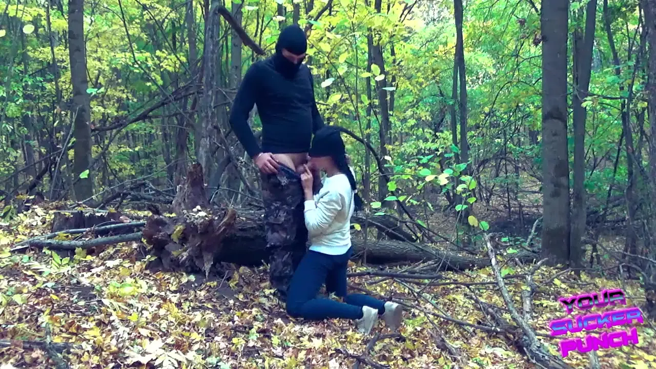 Forest hottie gives blowjob and gets fucked doggy style