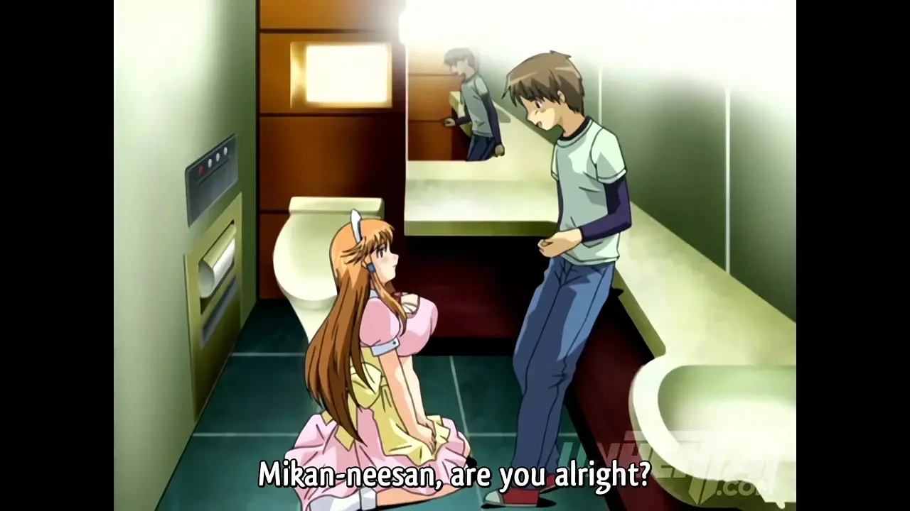 In this uncensored anime, an alluring Japanese step-sister touches her step brother's erection through her wet panties. She then proceeds to masturbate herself in public, building up to a big orgasm and squirting. The scene takes place on a crowded train, adding to the taboo excitement.